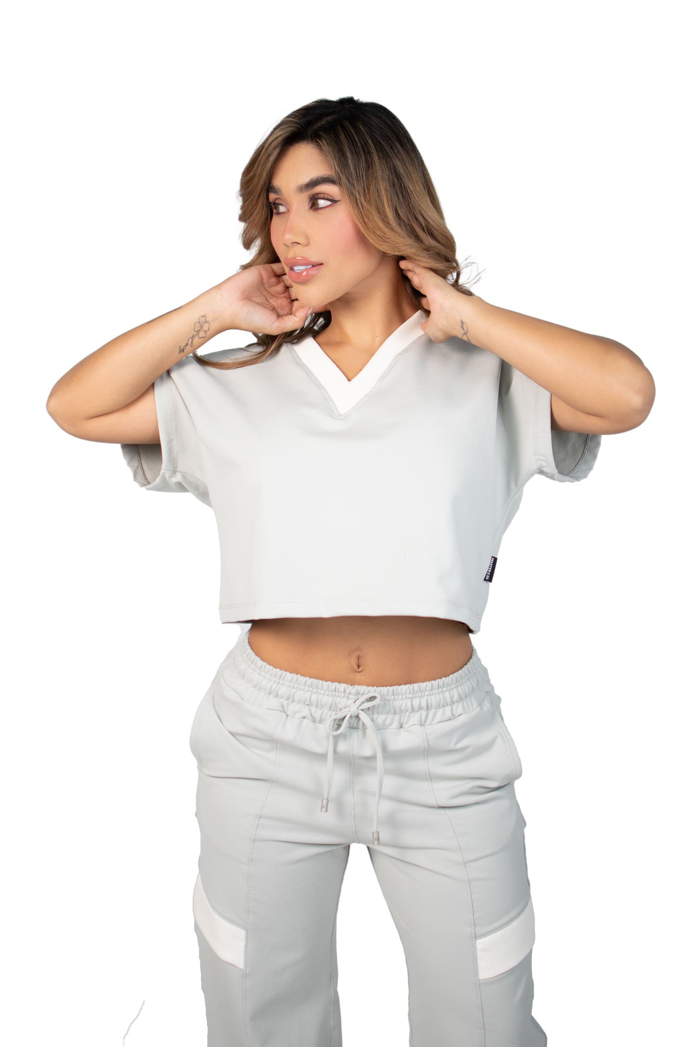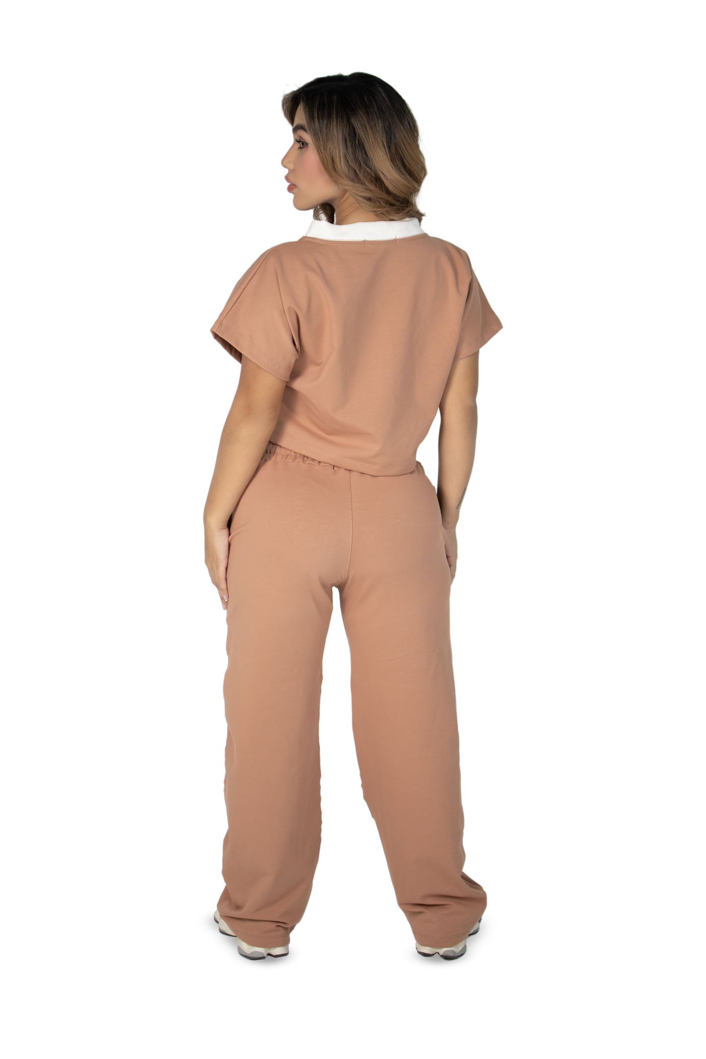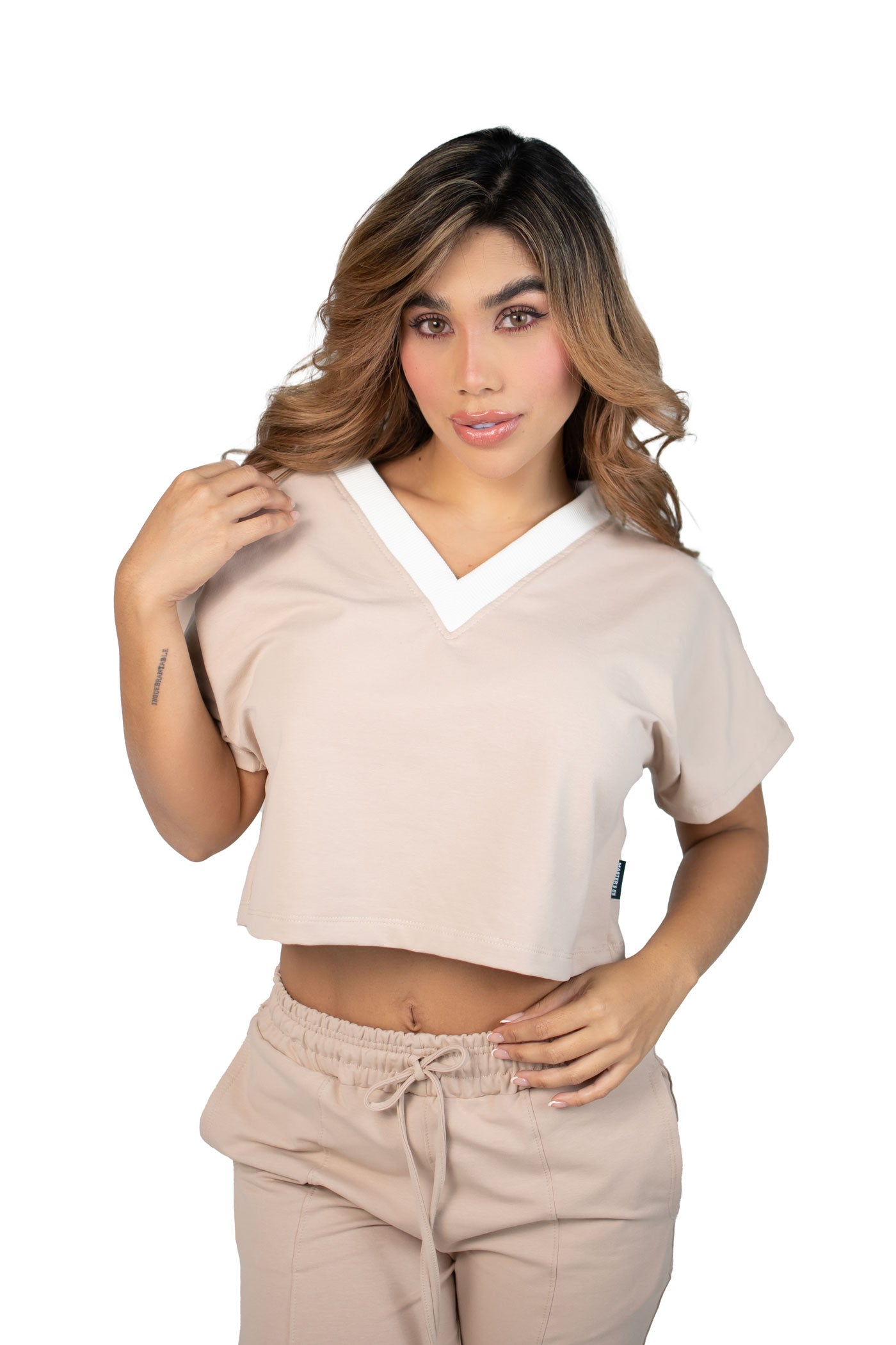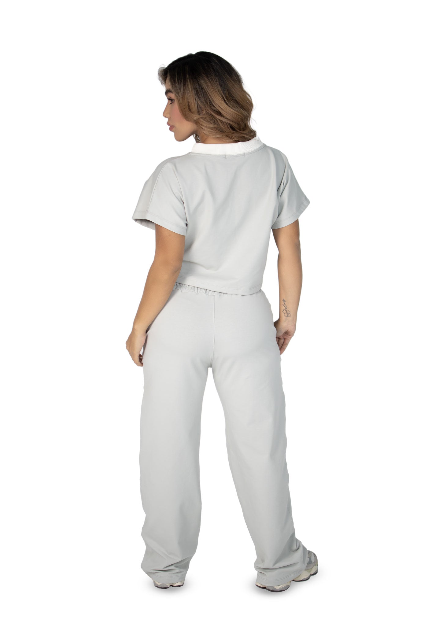 "El Vibe Free Set es una pieza esencial para mujeres que buscan comodidad sin perder el estilo urbano. La blusa semi oversize con cuello en V aporta frescura y libertad de movimiento, mientras que el pantalón sudadera de bota recta con líneas estilo alforza y la incrustación de tela en ambas piernas añade un detalle sofisticado y contemporáneo.